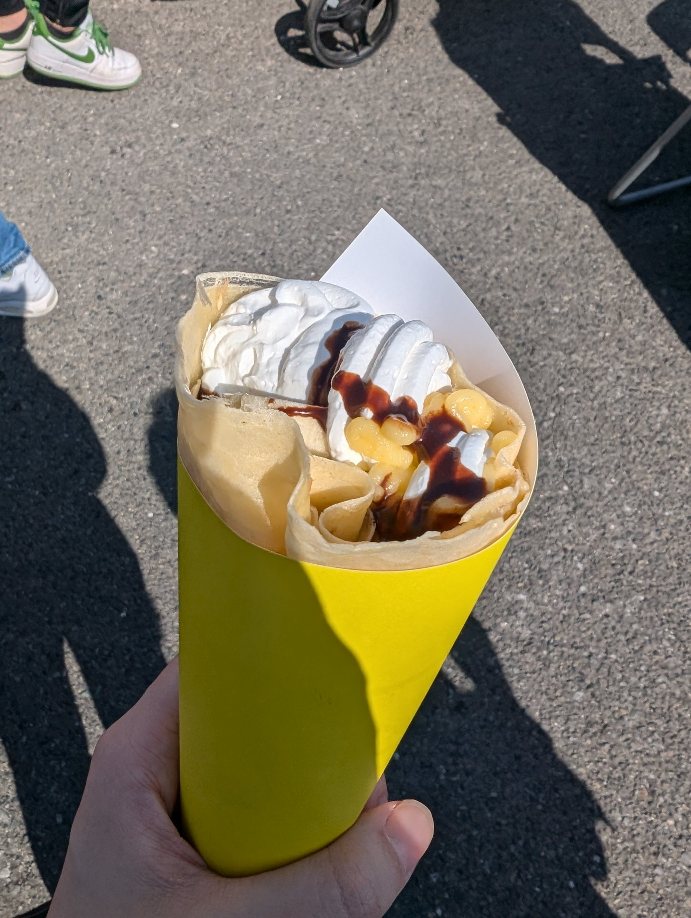 Twitterでモーニングのドリンクで頼めると知って注文。パンにつけるととろとろになる🌽・小さいお祭りで食べたクレープ