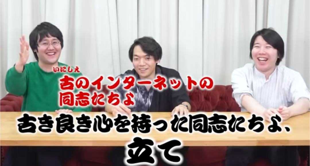 ☝️上の動画のスクショ。インターネット老人会のつるちゃんといざわさん。(テロップだとインターネットだけど、つるちゃんはインターネッツって言ってるのいつも笑う。)
